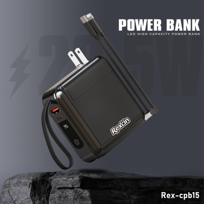 پاوربانک مدل Rex-cpb15 با ظرفیت 15000 میلیآمپر ساعت