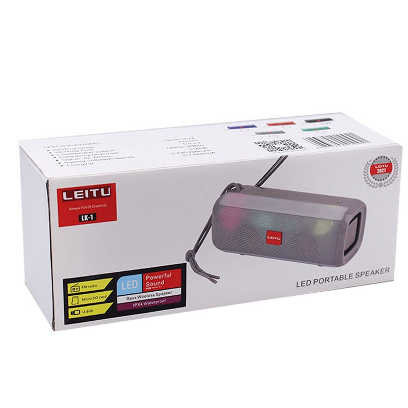 اسپیکر بلوتوثی، رادیو دار، رقص نور و چند پورته LEITU LK_1: وزن: 200 گرم نوع اتصال بلوتوث: بیسیم قابلیت پشتیبانی از کارتهای حافظه اقلام همراه: یک عدد کابل AUX و یک عدد کابل اندرویدی MICRO USB